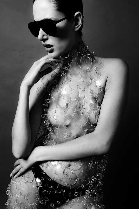 Así es como se generó la materialidad con la que Juan el Daltonico (Artista y Diseñador local), dio vida a un sombrero, un vestido y 6 tocados faciales. Piezas únicas donde cristales, patillas, terminales y puentes de anteojos, tomaron nuevas formas inspiradas en la naturaleza, la magia, la luz y lo onírico.